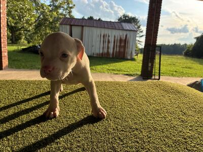 6 month old female American bully… going to pet home she is a good dog we have chickens and she li...