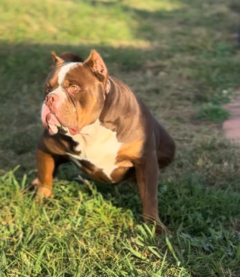 King Diamond is a chocolate tri American bully. He was imported from China a little over a year ago....