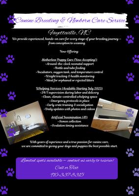 Canine Breeding & Newborn Care Services Fayetteville, NC Artificial Insemination (AI) Motherl...