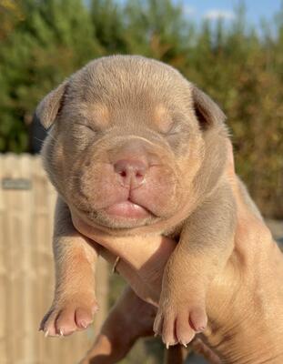Born September 19th, 2025 Male Markings: black merle Mom: blue tri Merle XL- ABKC registered D...
