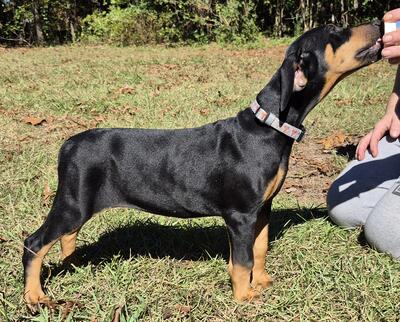 In search of a Female Melanistic black doberman. Upcoming litters are fine. If adult- prefer cropped...