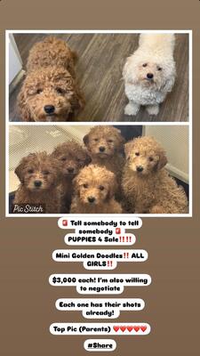 A litter of 6 miniature golden doodle puppies for sale!! 4 girls, and 2 boys. Cute and cuddly, and r...