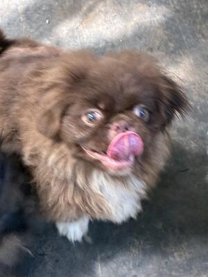 7/8 Pekingese- 1/8 Maltese. Mama is 5.5 lbs./ Daddy is 11 lbs. The mama and daddy both have the swee...