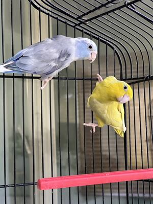 Parrotlet pair for sale dark factor pied cobalt male, and yellow female