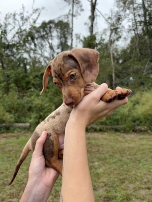 Short hair chocolate dapple male Dachsund. 9 weeks old. First set of shots multi rounds deworming ck...