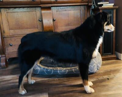 One yr old male purebred black Tri colored Mini Aussie needs a new home with loving person or family...