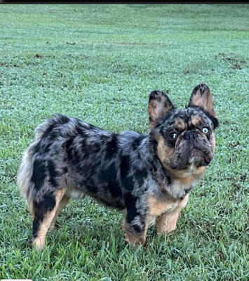 Beautiful black Tri Merle male son excellence and grandson of yolo has sired several litters Pics o...