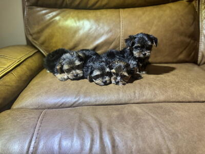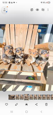 Yorkies (male) adorable sweet little babies. Loves attention and to cuddle. Mom is 7 pounds and da...