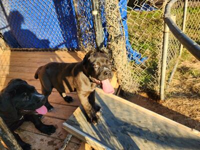 2 black males left 800. Shots and worm ed. Tails doc. Ears for 300 more. Ready to go now. Parents...
