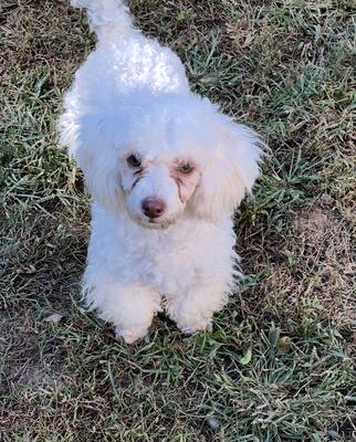 CKC 4lbs white toy poodle with a liver nose. (Red) With red eyes. He is proven. Had 3 beautiful li...