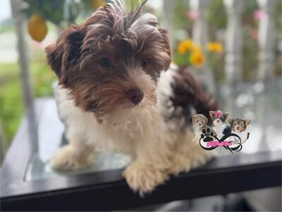 Parti yorkies 3 females one boy, they are AKC have 2nd round of vaccines we are located in Goldsboro...