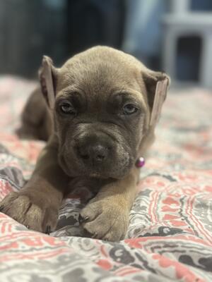 10 week cane corso female pup. Carbon Fawn Ckc papers Ears clipped tail docked. Shots up to date...