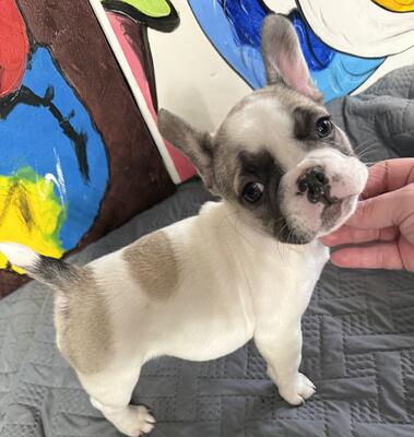 Merle and Pie Frenchies 2 boys 1 girl left Born October 11 2025 First round of shots and exam 11...