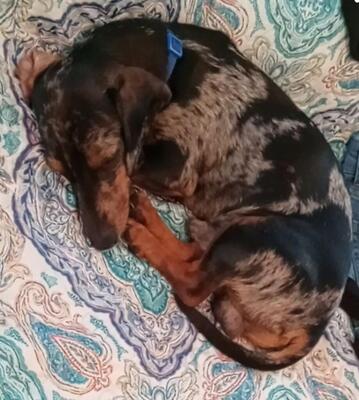 Black and tan parti female bred to Merle male White female bred to black and tan male Both bred ar...