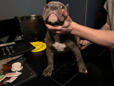 AKC English bulldog stud. We are wanting to rehome him interested in trading him for a female French...