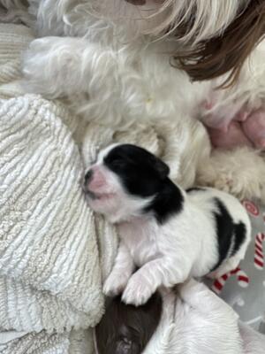 2 liver and white. 3 black and white. Males immaculately taken care of. Best Mommy EVER. I have 2 th...