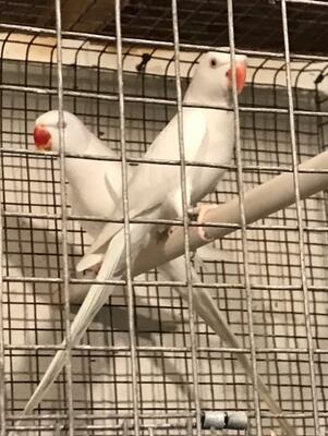 Unrelated pair of Albino Indian Ringneck Parakeets. Surgically sexed and banded. Hatched March 202...