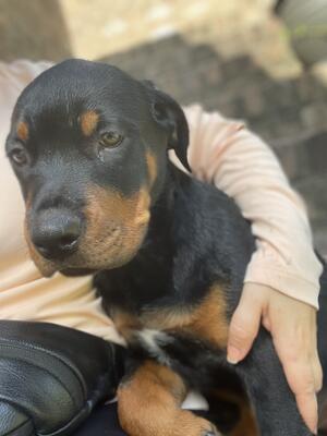 AKC Tails Docked Dew claws removed 2 rounds puppy vaccines Ears cropped(pending appt July 8t...