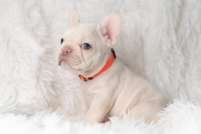 AKC Cream french bulldog Male(Orange Collar) . This little boy is a little ball of cuteness. He is a...