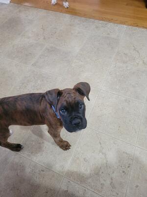 I have a 12 week old female boxer puppy ready to go. Has had 3 rounds of vaccines, started heartworm...