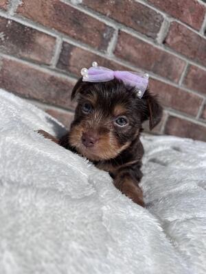 Female chocolate yorkie 12 weeks old She is absolutely precious with a spunky spirit. She was the s...