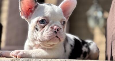 “Drip Drop” is a stunning koi black Merle French Bulldog Female with icy blue eyes, she’s a l...