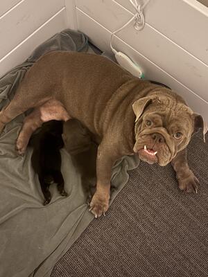 I have a female english bulldog 3 years old. Great with kids and other animals. House broken but, ha...