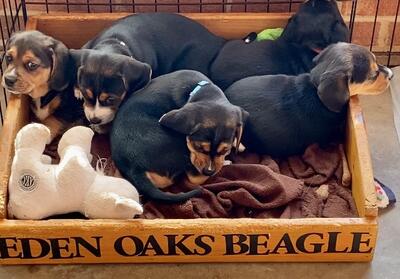 Happy, healthy Jackabee (Beagle Jack Russell) puppies seeking loving forever homes. 3 boys, 2 girls...
