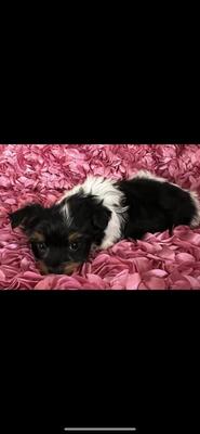 AKC registered female party color Yorkie born 7/1/25. Tail and declaw surgically removed completely...