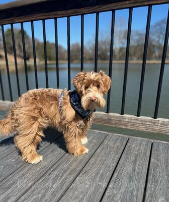 8 month old dark red Schnoodle boy with a all natural tail. Follow us at https://www.facebook.com/sh...