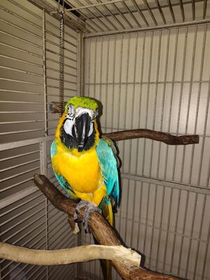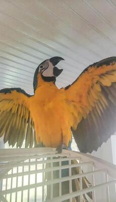 Blue and Gold Macaw Parrot Girl Missing A few Feathers under her wing Nice Parrot 2100 Pleas...