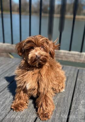 8 month old dark red Schnoodle boy with a all natural tail. Follow us at https://www.facebook.com/sh...