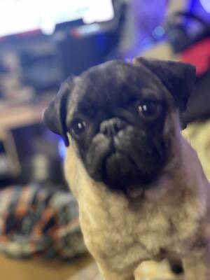 Male Pure Breed Pug pup born July 23 2025 utd on shots and dewormed he has a great personality gets ...