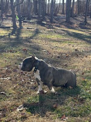 18 month old micro bully female. House and crate trained. Great with kids and other animals. She’s...
