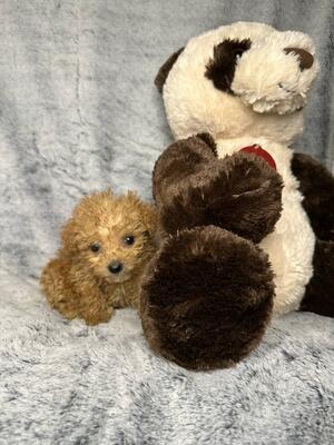 Ckc teacup Maltipoo. The color is Apricot. I have a male available. Ckc registered with all his dewo...
