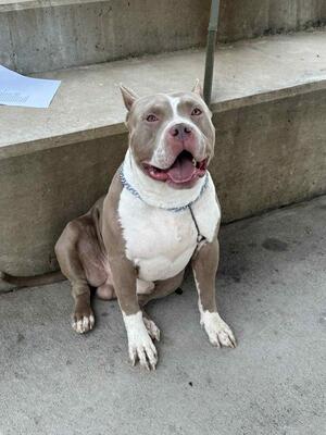 Xl American bully female 4 ys old. This sweet loving girl needs a new home. She is spayed, house bro...
