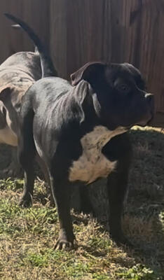 (SOLD) American Bully Female - Black & white ticked