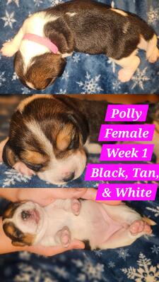 Stella gave birth to two (Black, Tan & White) tri-color females on 11/7/25. Ready to go home 1/1/26....