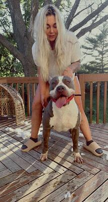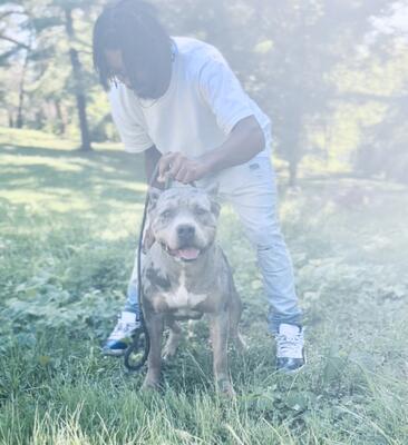 This is Vibe sheβs a XL American bully Merle female. Her pedigree is stacked. A sweetie that loves...