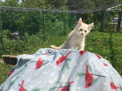 Lance, red Maine coon cat, polydactyl; friendly, playful with huge Maine coon cat tail; beautiful ma...