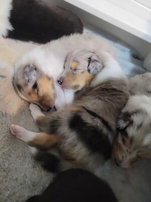 1 blue Merle boy available December 16. Gorgeous and well socialized. Mom is sweet, gentle dog as ...