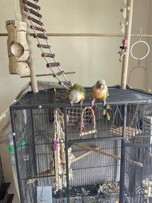 Rehoming my green cheek conures. they are sweet and playful. the rehoming including the cage, food, ...