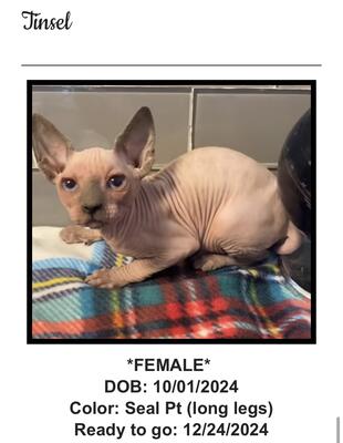 Kasper Seal Point Male Sphynx DOB 12/16/22 Will be ready to go middle/end of April after he is s...