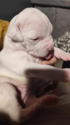 Olde English Bulldogge male pup for sale. He was born on 02/25/2025. He is very outgoing and friendl...