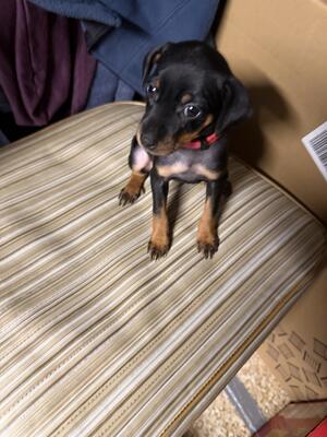 3 Min Pin Female Pups For Sale born 11/29/25, ready to go 1/24/26. Tails cropped, wormed every 2 wee...