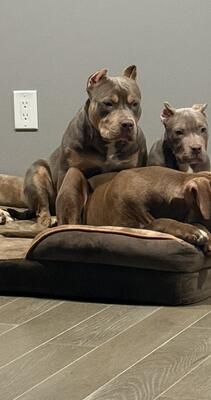 Healthy adorable champagne merle female. UTD with health certificate. She's going to be a tank for s...