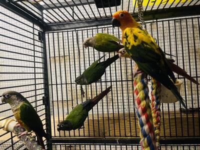 Selling 4 green cheeks conure Mom and Dad Plus two babies the cage additional Serious inquiries...