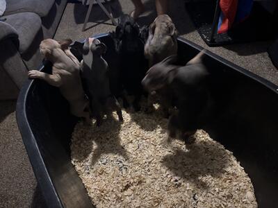 Black one -girl Fawn (brown) heavenjr- girl Tri color-boy Brindle-girl(Roxie) Birthday is...