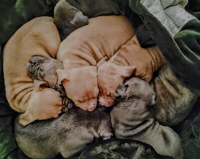 Boujie- The first born. He is solid grey or desired 'blue' with white socks and chest marking. His e...