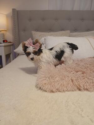 Hello everyone I have here a beautiful unique full parti yorkie he’s a sweet boy the only male in ...